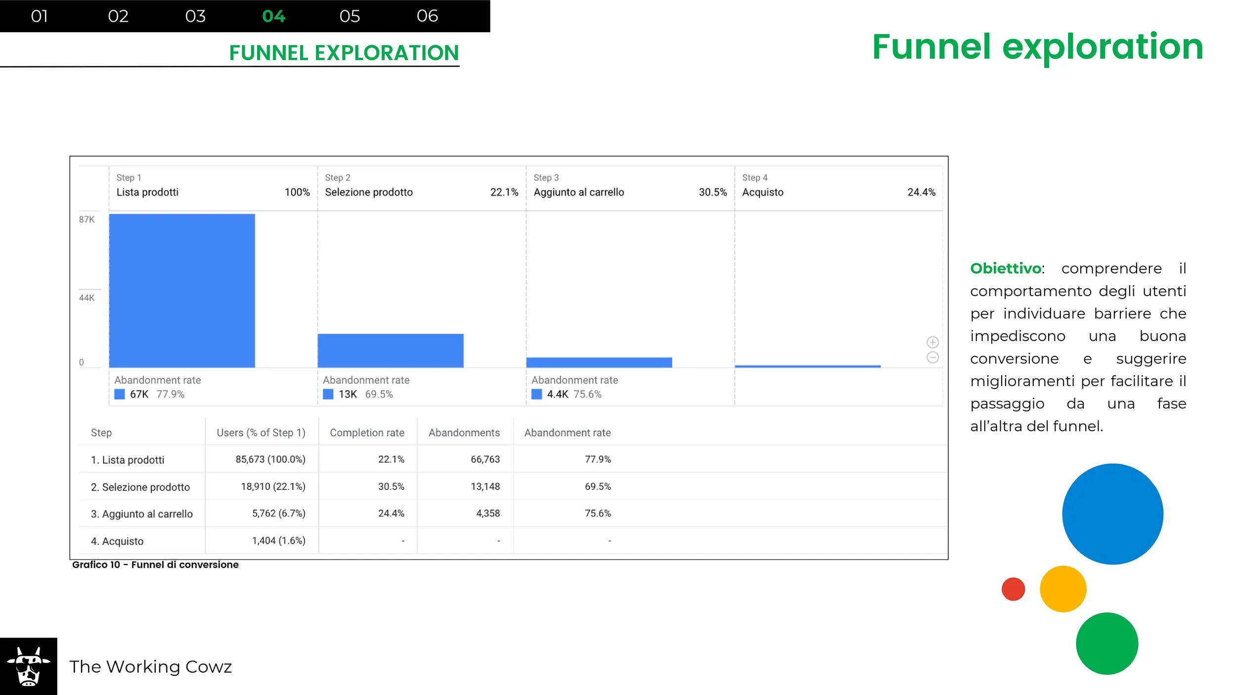 The analysis combined quantitative and qualitative research techniques, integrating Google Analytics data, user behavior tracking, and funnel exploration.